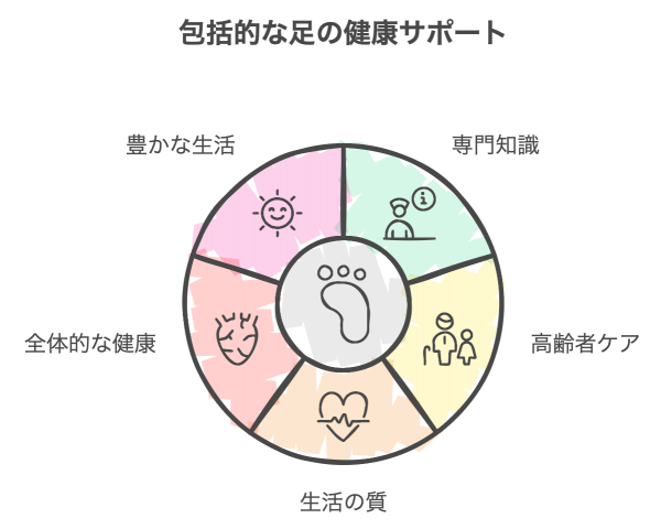 本ドキュメントでは、さいたま市浦和区に位置する足専門デイサービス「ヘルシーステーションNOAH」の取り組みについて紹介します。足の健康を支援することが、全身の健康や日常生活の質向上にどのように寄与するかを探ります。また、高齢者に特有の足の問題に対する解決策や、専門的なサポートの重要性についても触れます。